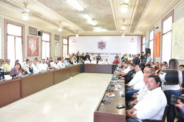 En la reunión tomaron parte, el secretario general de Gobierno, Héctor Joel Villegas González; el secretario de Recursos Hidráulicos, Raúl Quiroga Álvarez y el coordinador estatal de Protección Civil, Luis Gerardo González de la Fuente, así como la presidenta municipal de Tampico, Mónica Zacil Villarreal Anaya; el alcalde de Madero, Erasmo González Robledo y el alcalde de Altamira, Armando Martínez. También estuvieron presentes autoridades militares y navales.
