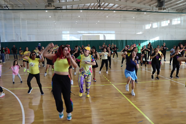 Durante el festival, deportistas y familias se unieron para apoyar esta noble causa, sumándose a las diferentes actividades y rutinas que se impartieron, promoviendo la activación física, la sana convivencia y la solidaridad social.