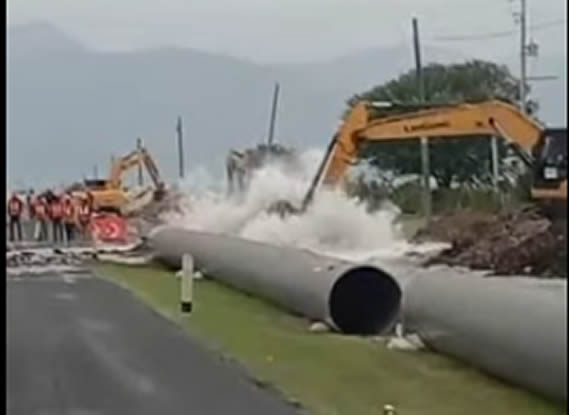 Raúl Quiroga Álvarez, titular de la SRH, explicó que el accidente se registró la tarde de este sábado, a la altura del kilómetro 15 de la carretera Victoria–Villa de Casas, cuando una retroexcavadora de la empresa responsable en este tramo, que trabajaba en la instalación de la segunda línea del acueducto, tocó y rompió la tubería instalada, provocando la fuga de hasta 900 litros de agua por segundo.