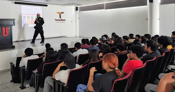 Altamira, Tamaulipas.- Como parte de las acciones de prevención de delitos digitales, personal de la Guardia Estatal Cibernética impartió la conferencia “Identificación y Prevención de Delitos Cibernéticos” a estudiantes de la Universidad Politécnica de Altamira.