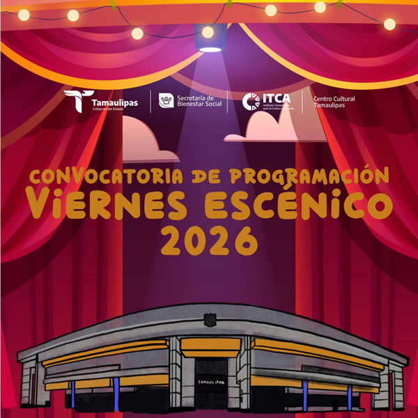 Ciudad Victoria, Tamaulipas.- En el marco del trigésimo noveno aniversario del Centro Cultural Tamaulipas, el Instituto Tamaulipeco para la Cultura y las Artes (ITCA) dio a conocer la creación del programa “Viernes escénico”, que brindará la oportunidad a creadores de Tamaulipas para formar parte de la programación 2026 del auditorio Alberto López en el mencionado recinto cultural.