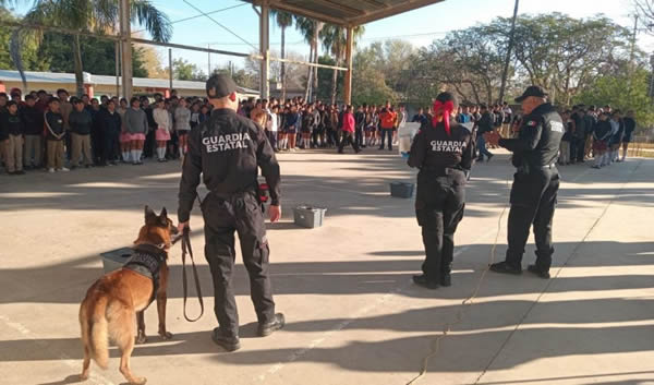 Ciudad Victoria, Tamaulipas.- Como parte de las acciones de prevención del delito y fortalecimiento de la seguridad en entornos escolares, personal del Agrupamiento Canino de la Guardia Estatal llevó a cabo una jornada cultural en la Escuela Secundaria Técnica “Magdaleno Aguilar Castillo”, ubicada en la colonia ejido La Presita.