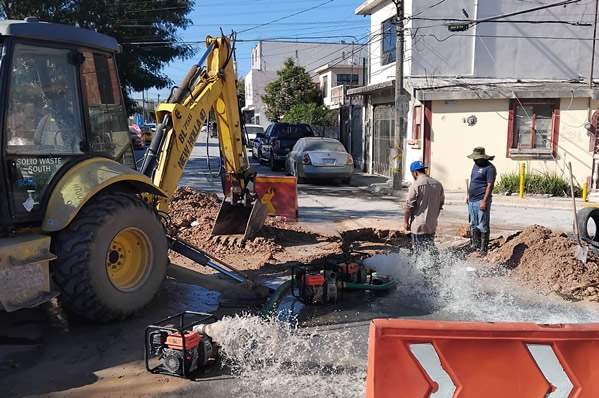 Por instrucciones del Alcalde, Carlos Peña Ortiz, la Comisión Municipal de Agua Potable y Alcantarillado de Reynosa concluyó maniobras de reparación en tubería de asbesto de 4 pulgadas de diámetro sobre calle Agustín Lara, esquina con José Alfredo Jiménez, en la colonia Santa Cecilia, trabajos que permitieron corregir una fuga y evitar el desperdicio del vital líquido, beneficiando a las familias del sector.