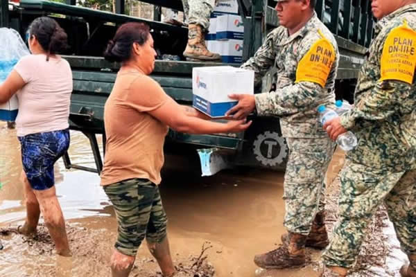 En Saltabarranca, tras el desbordamiento del río San Agustín que dejó incomunicados caminos en nueve comunidades, personal militar apoyó en la entrega de 169 despensas a familias de la comunidad El Ciruelo, algunas de ellas aisladas durante varias horas.