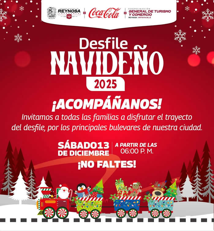 El Desfile Navideño es una tradición muy querida en Reynosa, y hoy sábado 13 de diciembre no será la excepción. ¡No te lo pierdas!