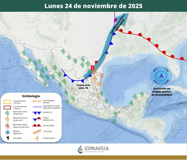 Informó que mantiene vigilancia continua sobre el comportamiento de los fenómenos hidrometeorológicos, en coordinación con la Conagua, y ha emitido recomendaciones a estados y municipios para activar protocolos preventivos.