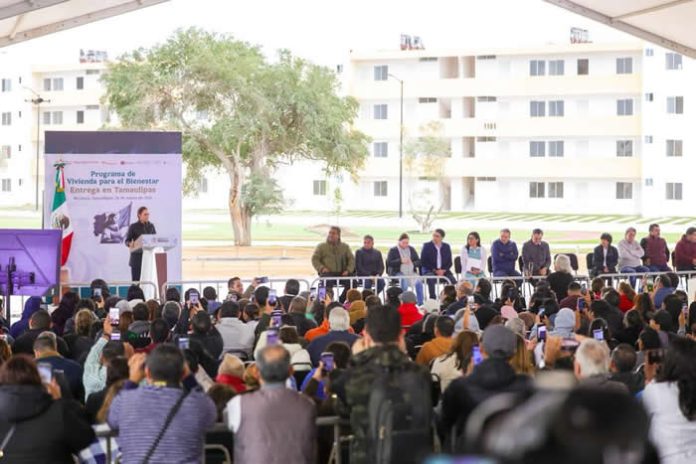Este evento es un paso importante para garantizar el derecho a la vivienda digna para las familias mexicanas, -dijo durante la entrega simbólica de 44 viviendas y agregó-, estamos trabajando para que todos tengan un hogar seguro y accesible.