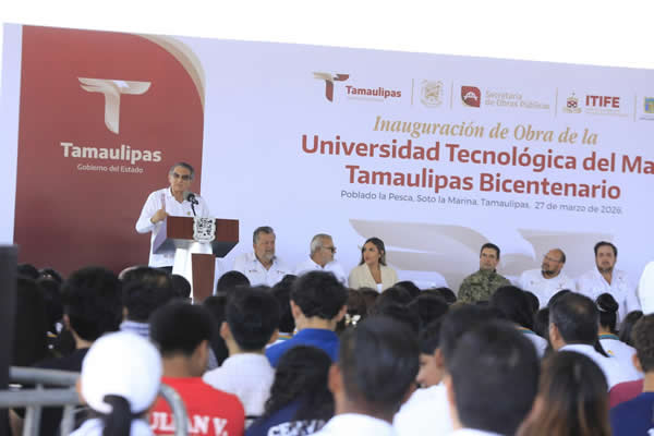 Soto la Marina, Tamaulipas.- El modelo humanista para la educación que impulsan los gobiernos de la transformación contribuye para tener cada vez una mejor sociedad, afirmó el gobernador Américo Villarreal Anaya al entregar obras por más de 19 millones de pesos en la Universidad Tecnológica del Mar Tamaulipas Bicentenario.