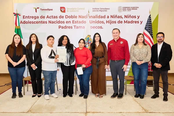 Gustavo Díaz Ordaz, Tamaulipas.-  En cumplimiento a las políticas públicas orientadas a la protección y garantía de los derechos de las personas migrantes y sus familias, el Gobierno del Estado de Tamaulipas, a través del Instituto Tamaulipeco para los Migrantes (ITM), en coordinación con el Ayuntamiento de Gustavo Díaz Ordaz, llevó a cabo la entrega de 250 actas de doble nacionalidad a niñas, niños y adolescentes nacidos en los Estados Unidos de América, hijos de madre o padre originario del estado de Tamaulipas, en el marco de la conmemoración del Día Internacional del Migrante.