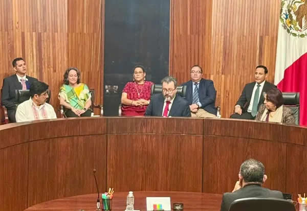También habló el ministro de la SCJN, Hugo Aguilar Ortiz, quien pidió a todas y todos los magistrados electos por voto popular de las salas regionales que recuerden que fueron electos por el pueblo y no producto de “acuerdos entre partidos” y “elites”, que “se deben a la ciudadanía”, que deben contribuir a la transformación de la vida institucional y que su labor debe estar “alejada de presiones partidistas”.