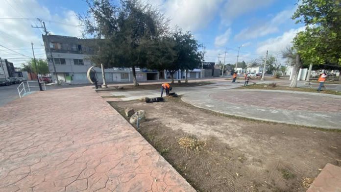 – Limpieza en la plaza Benito Juárez, ubicada en la calle Lerdo de Tejada, en la colonia Bella Vista.