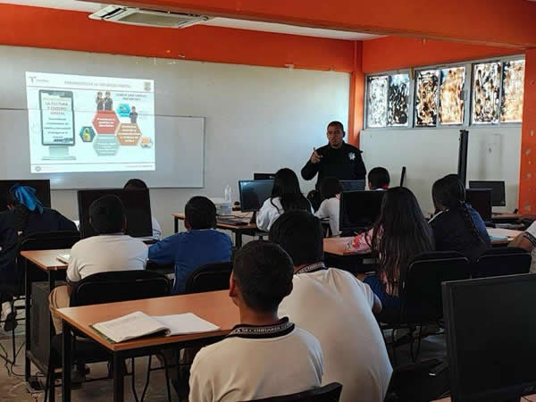 Mediante esta actividad, el personal de la Guardia Estatal abordó temas relacionados con riesgos digitales, medidas de autocuidado en internet, uso responsable de redes sociales y prevención de conductas constitutivas de delito en entornos digitales.