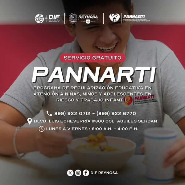 El Sistema DIF Reynosa, que preside Carlos Luis Peña Garza, cuenta con el programa PANNARTI, el cual impulsa el desarrollo integral de niñas, niños y adolescentes en situación de vulnerabilidad.