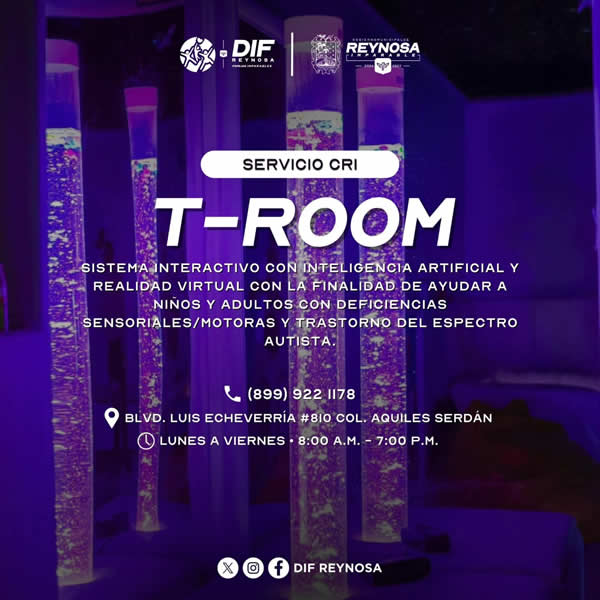 El Sistema DIF-Reynosa que encabeza Carlos Luis Peña Garza, a través del Centro de Rehabilitación Integral,  fortalece la atención a las familias mediante la incorporación del T-Room, un sistema interactivo que combina inteligencia artificial, realidad virtual y herramientas tecnológicas diseñadas para mejorar los procesos de rehabilitación.