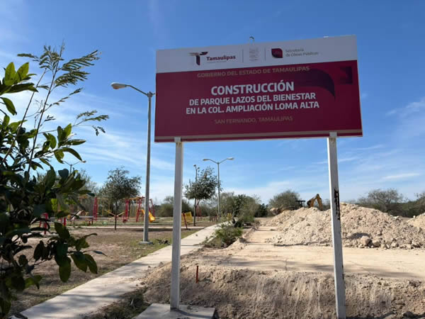 Ciudad Victoria, Tamaulipas.- El Gobierno y el Sistema DIF Tamaulipas, a través de la estrategia Lazos del Bienestar, trabajan de manera coordinada en la construcción de nueve parques comunitarios diseñados a partir de la participación directa de vecinas y vecinos de los polígonos de atención prioritaria.