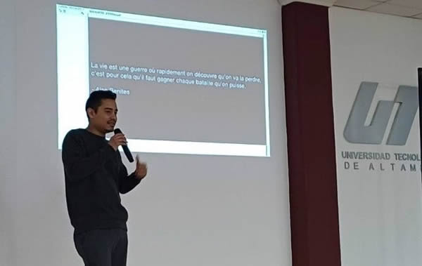 Altamira, Tamaulipas.– La Universidad Tecnológica de Altamira (UTALT) realizó la conferencia titulada “De Altamira a Canadá, superando desafíos y construyendo sueños”, como parte de las acciones institucionales orientadas al fortalecimiento del seguimiento de egresados y a la vinculación de la comunidad estudiantil con las exigencias del mercado laboral global.