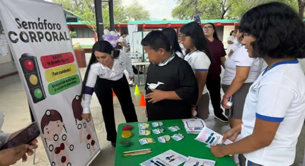 Esta actividad estuvo dirigida a estudiantes de la Escuela Secundaria General Número Cinco “Profesor Juventino Pineda y Ortega” y abordó temas relativos a la salud sexual y reproductiva como los métodos anticonceptivos, la Cartilla de los Derechos a la Protección de Salud y Seguridad Social así como la dinámica ‘’semáforo corporal’’ para prevenir violencia sexual.