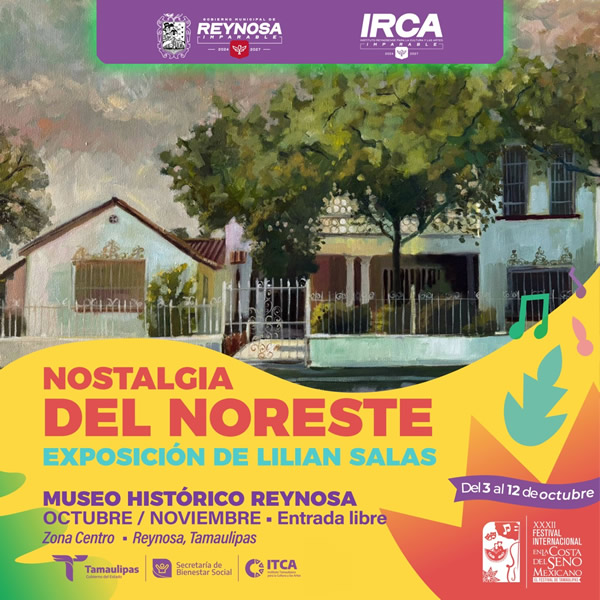 Siguiendo las instrucciones del Alcalde Carlos Peña Ortiz, el Instituto Reynosense para la Cultura y las Artes invita a visitar la exposición Nostalgia del Noreste, de la artista Lilian Salas.