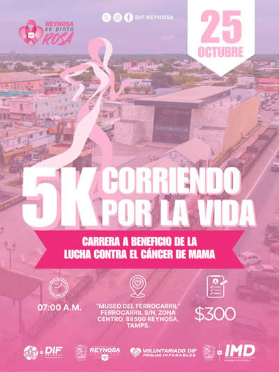 La Carrera a Beneficio de la Lucha Contra el Cáncer de Mama dará inicio en el Museo del Ferrocarril, Historia, Arte y Maquila, a las 7:00 A. M. y tendrá un costo de inscripción de solo 300.00 Pesos, que serán destinados a esta noble causa.