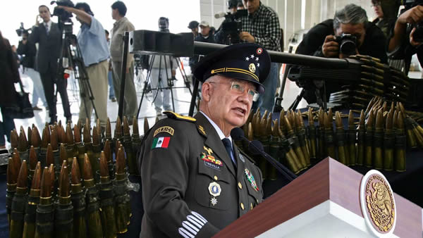 El secretario de la Defensa, Ricardo Trevilla, reveló que casi el 47 % de los cartuchos calibre .50 decomisados en México provienen de una fábrica estadounidense que abastece al Pentágono.