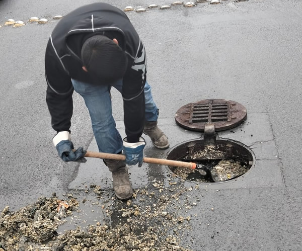 Durante estas maniobras, se extrajeron grandes cantidades de grasa acumulada, lo que impedía el flujo adecuado de las aguas residuales y provocaba problemas en el sistema de drenaje del sector.