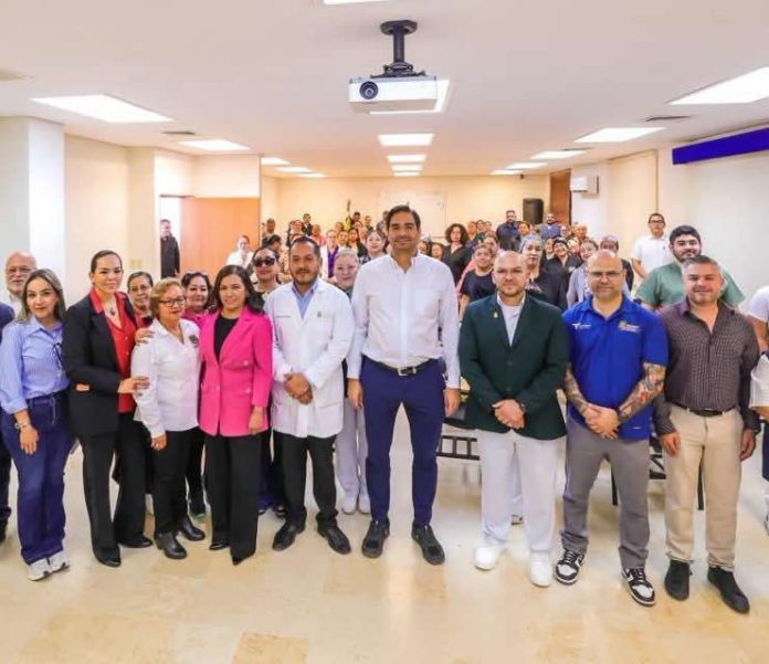 El Director del Hospital Materno Infantil, Eduardo López Torres, junto con el personal médico y administrativo, dio una cálida bienvenida al Alcalde de Reynosa en su visita para llevar los beneficios del programa municipal “Subsidio del Agua”.