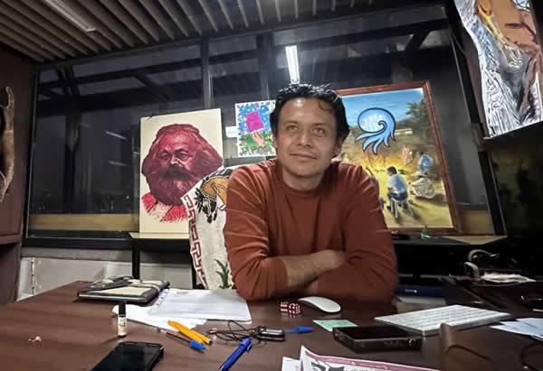 Aunque se le vio empacar sus cosas en cajas de cartón, al ingresar al Metro llevaba una mochila y un cuadro de Karl Marx.