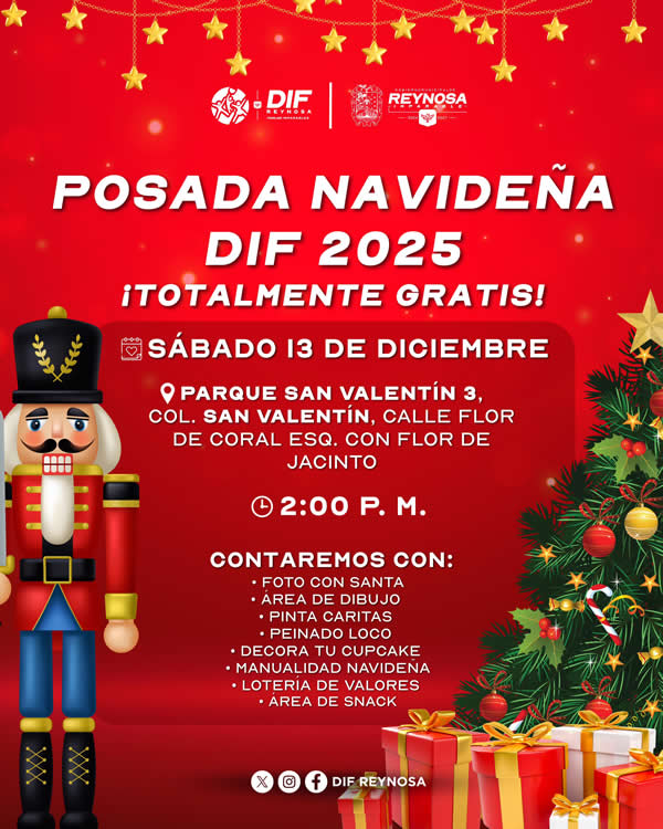 Por instrucciones del Alcalde Carlos Peña Ortiz, el Sistema DIF-Reynosa que preside Carlos Luis Peña Garza, llevará la magia decembrina a las familias de la colonia San Valentín con la Posada Navideña DIF 2025, un evento que busca fortalecer la convivencia y compartir momentos de alegría en estas fechas especiales.