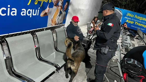 Cabe mencionar, este binomio K-9 cuenta con la especialidad en detección de narcóticos, lo cual permitió la inspección de maletas y autobuses, mismos que se encontraron sin novedad.