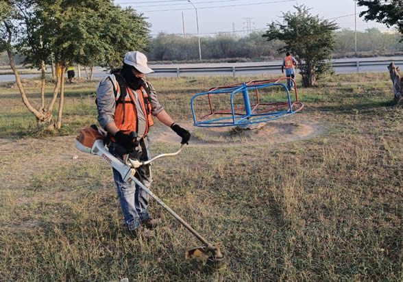 Continuación de limpieza en Calle Segunda, colonia Unidad Obrera. Limpieza de callejón Argüelles 7, Zona Centro. Limpieza, chapoleo, papeleo, barrido y raspado en plaza, colonia Nuevo Reynosa, calle Detroit con calle Los Angeles. Limpieza en avenida Rosalinda Guerrero.