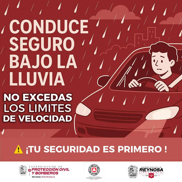 “CONDUCE SEGURO BAJO LA LLUVIA, NO EXCEDAS LOS LIMITES DE VELOCIDAD”, es el mensaje que queremos compartir a través de la Coordinación de Protección Civil y Bomberos con todos los conductores de nuestra ciudad.