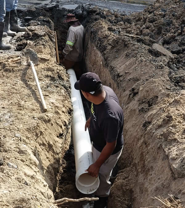 En esta ocasión, personal del organismo inició maniobras de rehabilitación de drenaje sanitario sobre bulevar Del Maestro, esquina con Fuente de Diana, en la colonia Las Fuentes, donde se lleva a cabo el reemplazo de ductos de PVC de 8 pulgadas de diámetro, a fin de solucionar el problema de fugas de agua residual que afecta a los vecinos del sector y optimizar el funcionamiento del sistema sanitario.