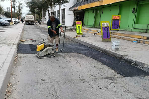 – Reparación de baches con carpeta caliente en la calle Oaxaca, colonia Rodriguez.