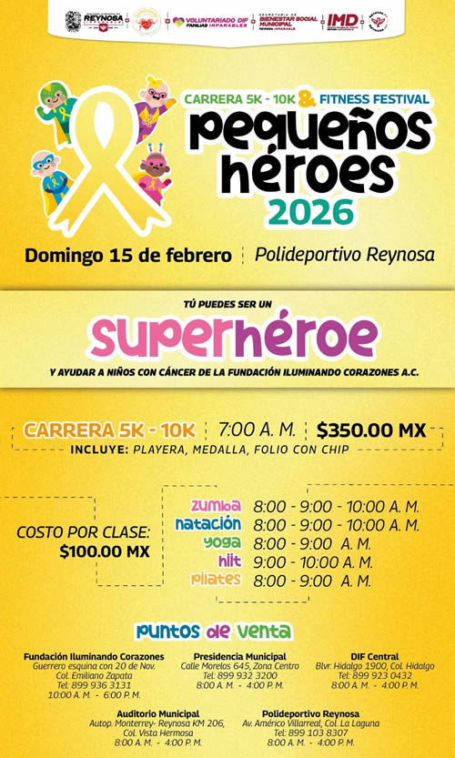 Este festival deportivo se llevará a cabo el próximo 15 de febrero a las 7:00 de la mañana en las instalaciones del Polideportivo de Reynosa, espacio que será facilitado por el Instituto Municipal del Deporte.