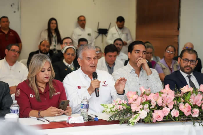 La Reunión que se llevó a cabo en las instalaciones del Hospital Materno Infantil de Reynosa, asistió el subdelegado Médico del ISSSTE, Alejandro Cortina Beltrán; el presidente municipal de Reynosa, Carlos Víctor Peña Ortiz; la directora del Distrito de Salud para el Bienestar, Iliana Villarreal Cantú; así como los representantes de la COPARMEX, CEMIC y unidades de salud públicas y privadas.