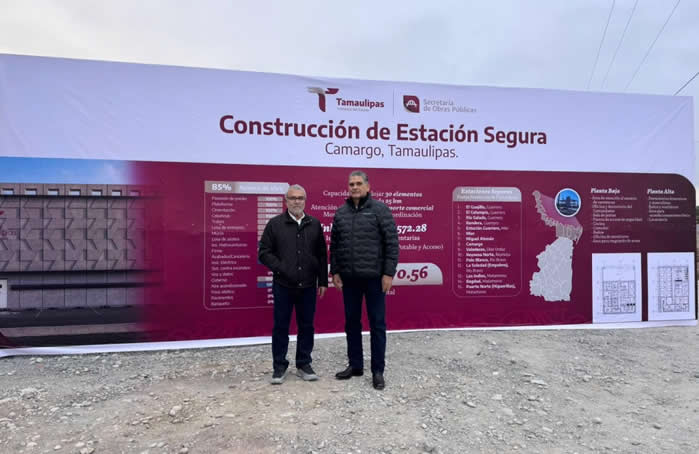 Camargo, Tamaulipas.– Como parte del compromiso institucional de fortalecer la infraestructura en materia de seguridad pública, el secretario de Seguridad Pública de Tamaulipas, Carlos Arturo Pancardo Escudero, supervisó la construcción de las Estaciones Seguras que se desarrollan en la zona fronteriza del estado.