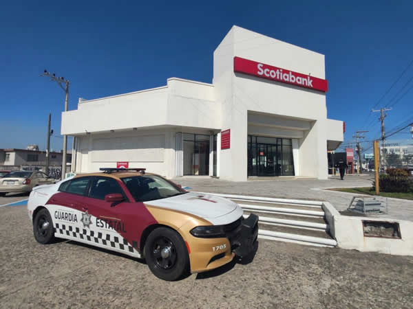 Ciudad Victoria, Tamaulipas.- Dentro de la estrategia preventiva del delito implementada por la Secretaría de Seguridad Pública de Tamaulipas (SSPT), personal de la Guardia Estatal realiza recorridos aleatorios de seguridad y vigilancia en instituciones bancarias públicas y privadas.
