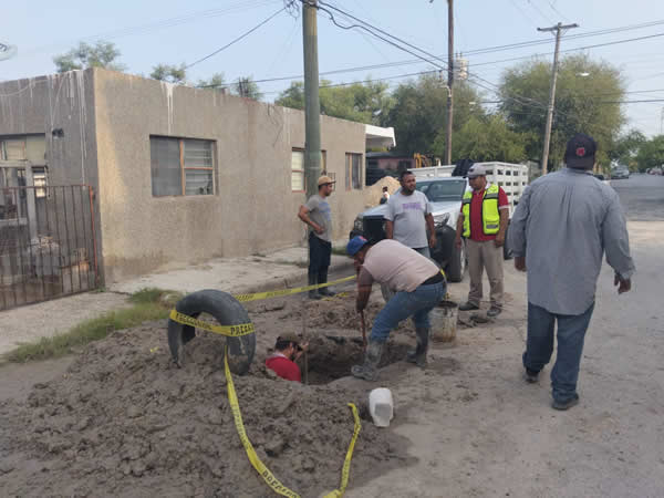 Atendiendo las indicaciones del Alcalde, Carlos Peña Ortiz, la Comisión Municipal de Agua Potable y Alcantarillado de Reynosa realiza maniobras de reparación de una fuga de agua potable sobre la calle Pino Suárez, entre Allende y Zaragoza, en la Zona Centro, con el objetivo de evitar el desperdicio de este importante recurso y mejorar la distribución del servicio en el sector.