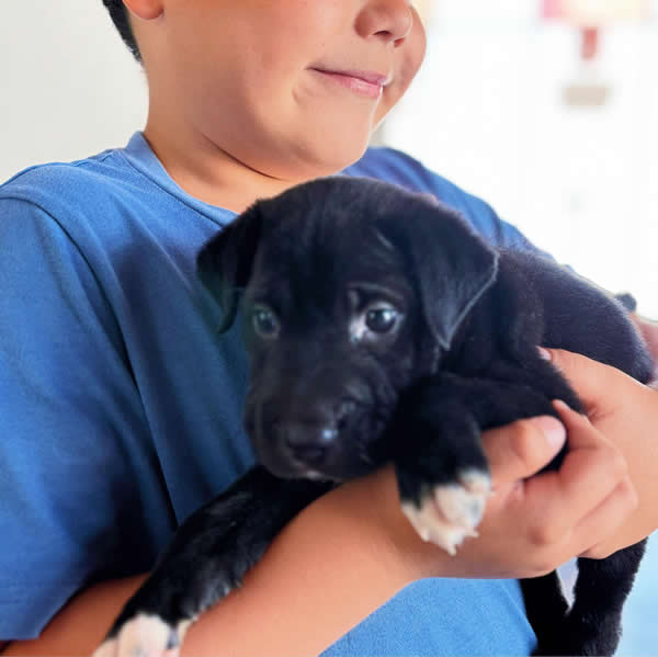 Irving R. carga orgulloso a “Botas”, así lo bautizó, tuvo el consentimiento de sus padres para que “Botitas” forme parte de su familia, aquel perrito que rescató el Alcalde Carlos Peña Ortiz y que hoy brinca y corre en una vivienda donde tiene alimentos a su alcance pero sobre todo el cariño de su nueva familia.